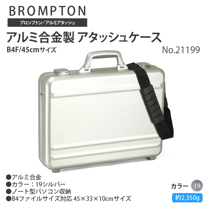 ※特典内容についてはPC環境よりご確認下さい+ 商品仕様 +ブロンプトン/アルミアタッシュアルミ合金 アタッシュケース ノート型パソコン収納 B4ファイル/45cmサイズ No.21199■サイズ:45×33×10cm(B4ファイルサイズ対応)■内 寸:41×28.5×7.5cm ※内寸表示はコーナー部、内部金具を除く■重 量:約2,350g■カラー:シルバー■素 材:アルミ合金■構 造:●本体内部:釣り留め付仕切りポケット、フラップ付ネットポケット2ヶ、小物ポケット、固定ベルト、ホールド用仕切り付●肩アテ付ショルダーベルト付●内部:ホールドベルト付■中国製(企画:日本)※色合いに関してはPC環境や光の当たり具合により異なって見える場合がございますが予めご了承ください※注意事項等がございます。必ず購入前にPC環境より商品ページの確認をお願いします※沖縄、北海道、離島、一部地域に関しては別途送料が発生します ■旅行や出張などに使われるキャスターが付いたバックをキャリーバッグ、キャリーケースと言います。国内旅行用カバンや海外旅行用鞄に使用するバッグで下に車輪がついて移動が楽に出来る設計となっています。また、サイズも様々で各商品によって異なりますが1泊用、2泊用、3泊用と小容量から大容量まで収納容量も異なります。日帰り旅行用かばんや修学旅行、兼ビジネスバッグとして出張用としても多用されております。ビジネスマンには欠かせない営業用や出張用などに便利なパソコン対応もあります。中にはA4ファイルが入るA4対応商品や書類が沢山入る収納量の多い物もありビジネスシーンに人気です。合成皮革はビニールレザー、PVC、PU、ソフトレザーとも言われ雨に強く使い勝手の良い比較的安価な素材です。ナイロン素材は安価ですが耐久性も強く撥水効果もある為、ビジネスマンに多く使用されています。本革は動物の皮を使用した高級素材で使い込むほど個性が出て風合いが出てきます。高価ですが、ステータスにもなりお洒落なアイテムとして人気です。■アウトレットの用語説明は、傷あり商品、モデルチェンジでの廃盤、型落ちなどがあります。わけあり、ワケありとは、限定で通常より%offしたセール商品、バーゲン品、激安商品、SALE企画、廃盤予定商品などを値下げしたものを言います。無垢材とは木その物の事。森で育った木を切って削って出来たのが無垢材です。完成したむく材家具は、木の風合いがしっかりと出ているのが特徴で使っていく程に木に深い味わいが出てきます。木の日焼けや、使用上の傷が刻まれたりなど経年変化と呼ばれる物。逆に表面を削って再塗装すればほぼ新品の状態に戻ります。本物感があり高級で高品質な家具が多く、拘りの強い人に好かれます。ただし価格が高い、重厚で重いなどの特徴も突板(つきいた)とは薄くスライスした木のシートをベニヤなどの板に張り付けたものを指します。芯材(フラッシュ合板やMDF、低価格な無垢材などの土台にする部分)に貼りつけてます。フラッシュとは、中が空洞になっている芯材で軽量で軽い。MDFは、木くずを集めて固めた物で重量が重い特徴と硬い頑丈で丈夫な心材。突き板家具は無垢材と遜色なく本物感があり、無垢と比べかるい。価格もムク材に比べて安価です。金額がやすいので実用的です北欧テイストとはスウェーデン、フィンランド、デンマーク、ノルウェー、アイスランドの5ヶ国の北欧を連想させる雰囲気の家具の事を北欧家具と総称して言われます。シンプルで飽きがこなくおしゃれで機能的にも優れたデザインが多く、天然杢の温もりや肌触りの優しい素材感を生かしたしんぷるでお洒落な家具が多い。中には複数の無垢材を使ってかわいいテイストの家具などもあります。モダンテイストとは直線的なデザインやシンプルにまとめられたかっこ良いデザインなどが多く、スタイリッシュで洗練されたデザイン性を感じさせるかっこ好いテイスト。ブラックやホワイトなど単色でクールでカッコイイ空間を演出し、高級感を感じさせます。高級マンションなどに多いテイストですクラシックテイストとはルネッサンス調・バロック調・ロココ調・ゴシック調などのヨーロッパの家具スタイル。アンティーク仕上げの家具や猫脚、曲線などを取り入れた可愛らしい家具や、艶のある鏡面仕上げで華麗なフォルムの美しい家具などあります。象嵌など綺麗な装飾が施された家具も。職人がひとつひとつ作り上げた手彫りのように大量生産が難しく煌びやかで高級感を演出する高級家具。よく洋画などで豪華で華やかな可愛い洋室やエレガントでリッチなゴージャス感が得られるため、女性にはとても大人気なテイストです。輸入商品の為、一般的には高価な物が多い中、中国で生産した安価で比較的安い家具の需要も高まっていますミッドセンチュリーテイストとは1940年頃、アメリカで軍事用に開発された材料や、成形合板などを使用した軽快なデザインが特徴。ミッド・センチュリー・モダンは、シンプルかつ合理的であ