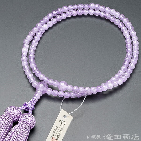 珠の数:主珠108個珠の素材:紫雲石房の素材:正絹頭付房(藤色)サイズ:8寸サイズ宗派:臨済宗の本式数珠備考:桐箱入り臨済宗用の正式な女性用の念珠です。紫雲石の5mm玉を使用しました。正絹の頭付房がついています。数珠は桐箱に入れてお届けします。ご進物・プレゼント用のギフト包装を無料で承ります。お客様に代わり当店スタッフが心を込めて包装させていただきます。「志」、「御祝」、「記念品」などの、のし紙も無料でお付けすることができます。ご希望の方は備考欄にご記入ください。ギフト対応商品説明珠の数主珠108個珠の素材紫雲石房の素材正絹頭付房(藤色)サイズ8寸サイズ宗派臨済宗の本式数珠備考桐箱入り薄い紫の中に白色が雲のように見える天然石の紫雲石を使用した女性用の臨済宗用本式数珠です。上品な落ち着きのある色目ですので、幅広い年代の方にお使いいただけます。頭付房には高級素材の正絹を使用しております。京念珠製造師が匠の技で仕立てた逸品でございます。【珠の素材】紫雲石 主珠108個主珠…紫雲石(5mm)親珠…紫雲石(10mm)天珠…紫雲石(4mm)【石の力】◆紫雲石◆紫雲石はラベンダーアメジストとも呼ばれ、不安や迷いを取り除き、安らぎを与えてくれる力があるとされています。【房の素材】房のデザイン:正絹頭付房房色:藤色◆正絹頭付房 京都製◆京都の伝統工芸である「京房ひも」の職人が製作した正絹頭付房を使用しております。京房ひも職人が作った証しであるシリアルナンバーをお付け致します。※こちらは見本のシリアルナンバーです。シリアルナンバーは商品ごとに違います。