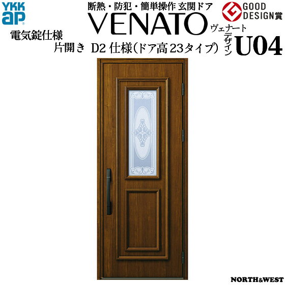【送料無料】【最安値挑戦】カギを操作する手間がなくなり、ドアホンとの連動で室内から施解錠の遠隔操作も出来る人気商品です。YKKAP玄関 断熱玄関ドア ヴェナート[スマートコントロールキー][A] 片開き D2仕様[ドア高23タイプ]:U04型[幅922mm×高2330mm]【ykk】【YKK玄関ドア】【断熱ドア】【電気錠】【カードキー】【リモコンキー】【携帯錠】【ピタットKey】【ポケットKey】【ベナート】