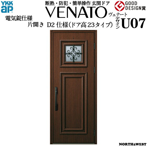 【送料無料】【最安値挑戦】カギを操作する手間がなくなり、ドアホンとの連動で室内から施解錠の遠隔操作も出来る人気商品です。YKKAP玄関 断熱玄関ドア ヴェナート[スマートコントロールキー][A] 片開き D2仕様[ドア高23タイプ]:U07型[幅922mm×高2330mm]【ykk】【YKK玄関ドア】【断熱ドア】【電気錠】【カードキー】【リモコンキー】【携帯錠】【ピタットKey】【ポケットKey】【ベナート】